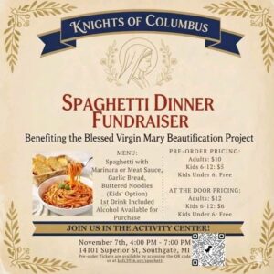 St. Nick returns while he warms up for Christmas as our guest of honor for Brunch with Santa on December 17th in the St. Pius School Activity Center after 11:00 Mass. Proceeds go toward out St. Pius Tuition Scholarship. Last year’s event was so well received that registration and wristband are necessary for this year. Volunteers are greatly needed. See the link to sign-up on page 6.